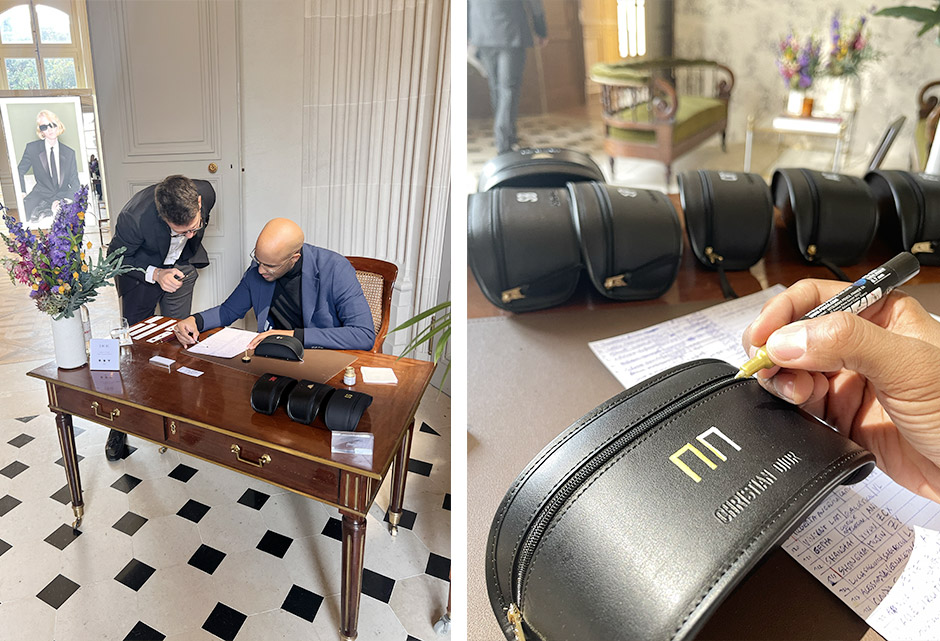 Notre artiste, Hakim Idriss, reconnu pour son expertise en personnalisation sur cuir, était présent pour échanger avec des partenaires et clients internationaux. Il a réalisé des personnalisations d’étuis à lunettes Christian Dior, en peignant à la main des initiales et des illustrations emblématiques de la Maison. Cette collaboration avec Dior a été particulièrement enrichissante, marquant notre première expérience avec cette prestigieuse Maison.
