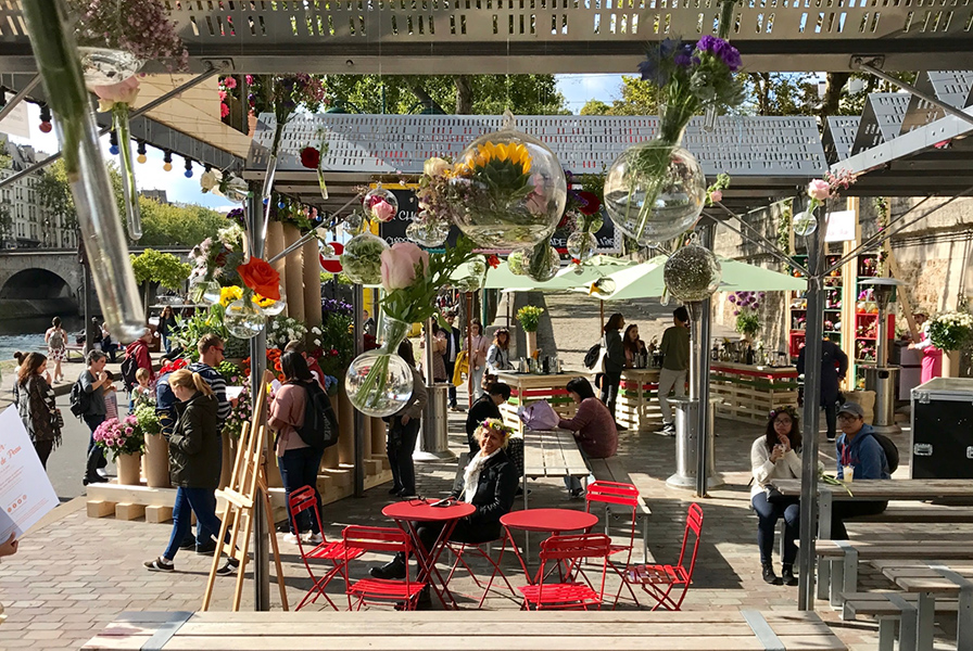Dans ce cadre, « Fleur en scène » a posé ses valises fleuries aux Nautes, sur les quais de Seine. Au programme, de nombreuses activités étaient proposées : ateliers de couronne de fleurs (En compagnie de Nathalie et Ayako – Atelier Carmin), initiation de cocktails et food autour des fleurs, Flower Yoga (oui oui, ça existe) et…tatouages éphémères ! Le samedi entre 17h et 20h, c’était « Flower Silent Disco », un concept importé des Pays-Bas qui consiste à profiter de la soirée avec un casque sans fil qui diffuse la musique en direct.