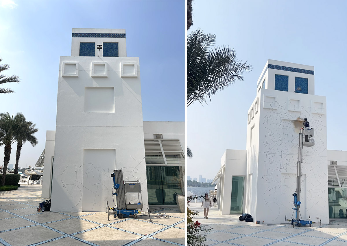 Dans la continuité de nos projets internationaux, cette fresque s’inscrit dans une démarche globale où l’art devient un levier stratégique, comme dans notre exposition d’art contemporain en entreprise à DIFC ou encore des réalisations à forte dimension visuelle comme le projet Montblanc en Inde. Nous intervenons également sur des espaces plus fonctionnels, comme la salle de sport QUBE, ou des univers variés tels que American Car City et le live painting Montblanc. Notre travail s’étend aussi à des projets culturels et urbains, comme le street art à Casablanca, des installations plus complexes telles que le mur de valises Montblanc à Dubaï, ou encore des activations retail comme Coach au Bon Marché et des projets artistiques plus singuliers tels que la cuisine street Serge Gainsbourg.