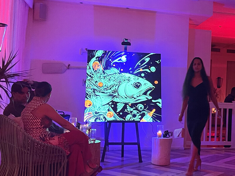 La réaction à cette performance artistique a été extrêmement positive, soulignant l’efficacité de l’art phosphorescent pour capturer l’attention et enrichir l’expérience des invités. L’effet lumineux a ajouté une touche de mystère et de modernité à l’événement, renforçant le thème d’innovation et de luxe de la soirée.