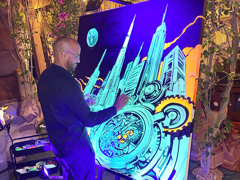 Pour des installations plus ambitieuses (live painting, fresques, ateliers), l’espace est défini en amont selon le support et le nombre de participants.