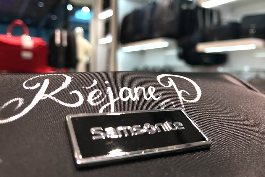 Puis dans un second temps, la boutique se transformait en espace événementiel privé où étaient attendus blagueurs, influencer et meilleurs clients, qui avaient la chance de se voir offrir de petites pochettes Samsonite personnalisées de leur initiales / surnoms. Une très agréable soirée pour notre artiste qui n’a d’ailleurs pas tardé à recollaborer avec la marque Samsonite sur un autre événement. Nous tenons à souligner la bonne humeur très contagieuse de l’ensemble de l’équipe que nous avons rencontré sur place ; nous avons rarement été aussi bien reçu et l’ambiance détendue et bienveillante n’a fait qu’enrichir et mettre à l’aise notre artiste pour ses interventions en direct sur les produits.