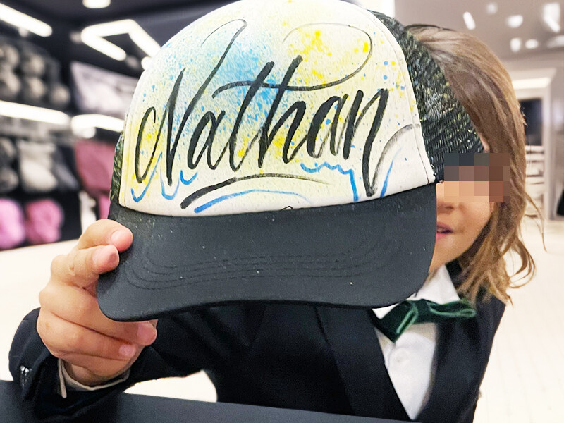Mais cette fois-ci c’est bien au Citadium Haussman que notre artiste s’est rendu. Et pas n’importe lequel car Romain est l’un des plus expérimentés de notre équipe en matière de personnalisation. Il maîtrise comme peu d’autres artistes l’art du lettering avec précision et un style aux saveurs « street » comme on les affectionne beaucoup chez nous (On vous invite d’ailleurs à aller jeter un oeil à son intervention chez Coach la Vallée Village qui vaut le détour).